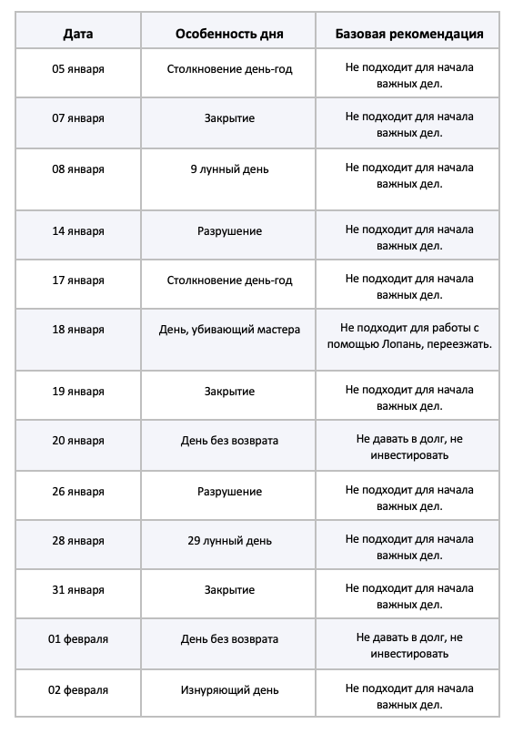 Такие дни могут быть сложными или сопряжены внезапными переменами. Рекомендуется их избегать для значительных начинаний.