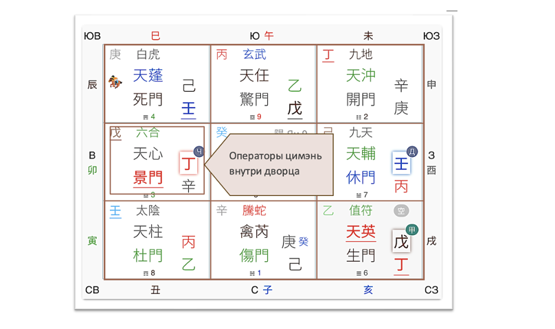 Изображение карты расклада цимэнь (в квадрат обведены операторы внутри дворца):